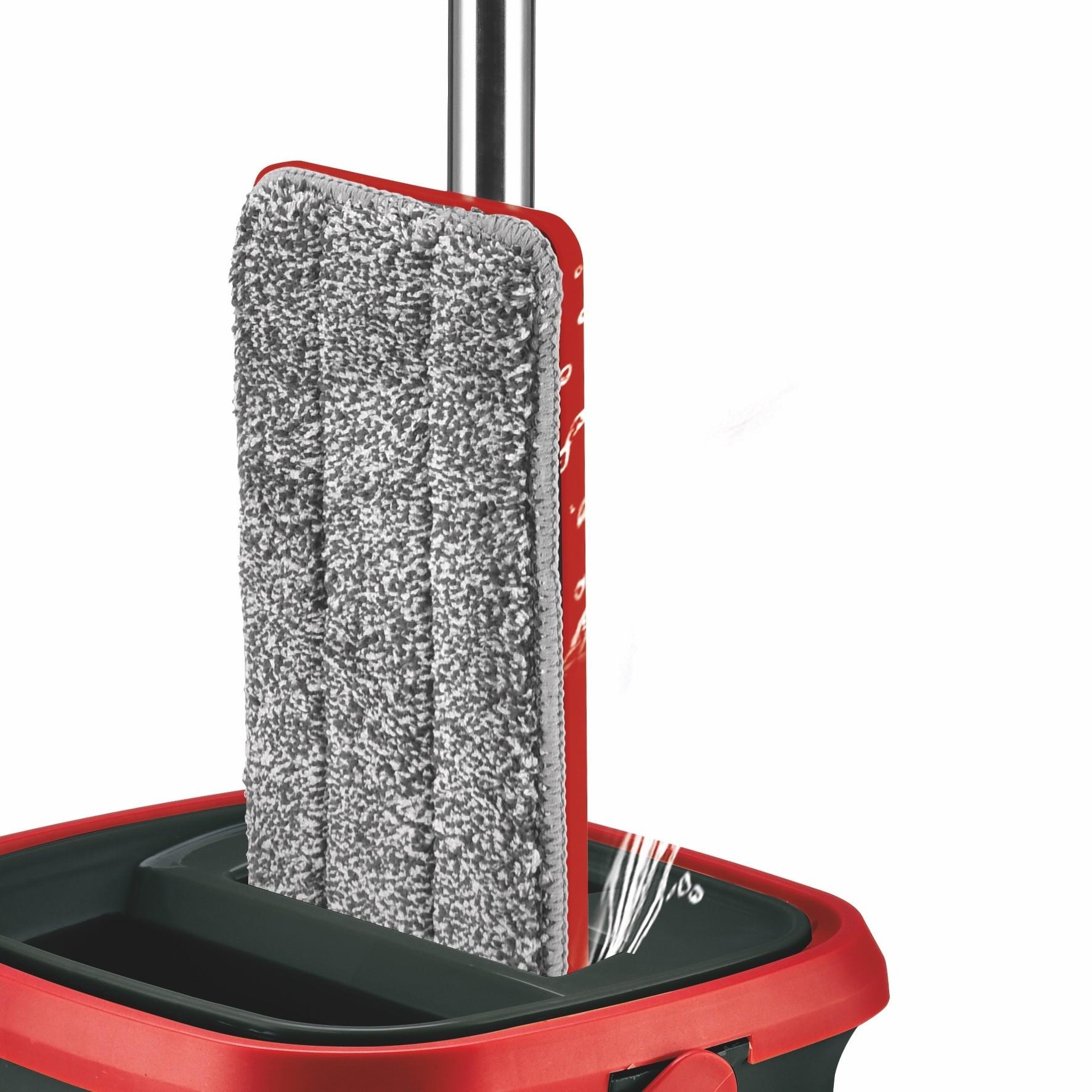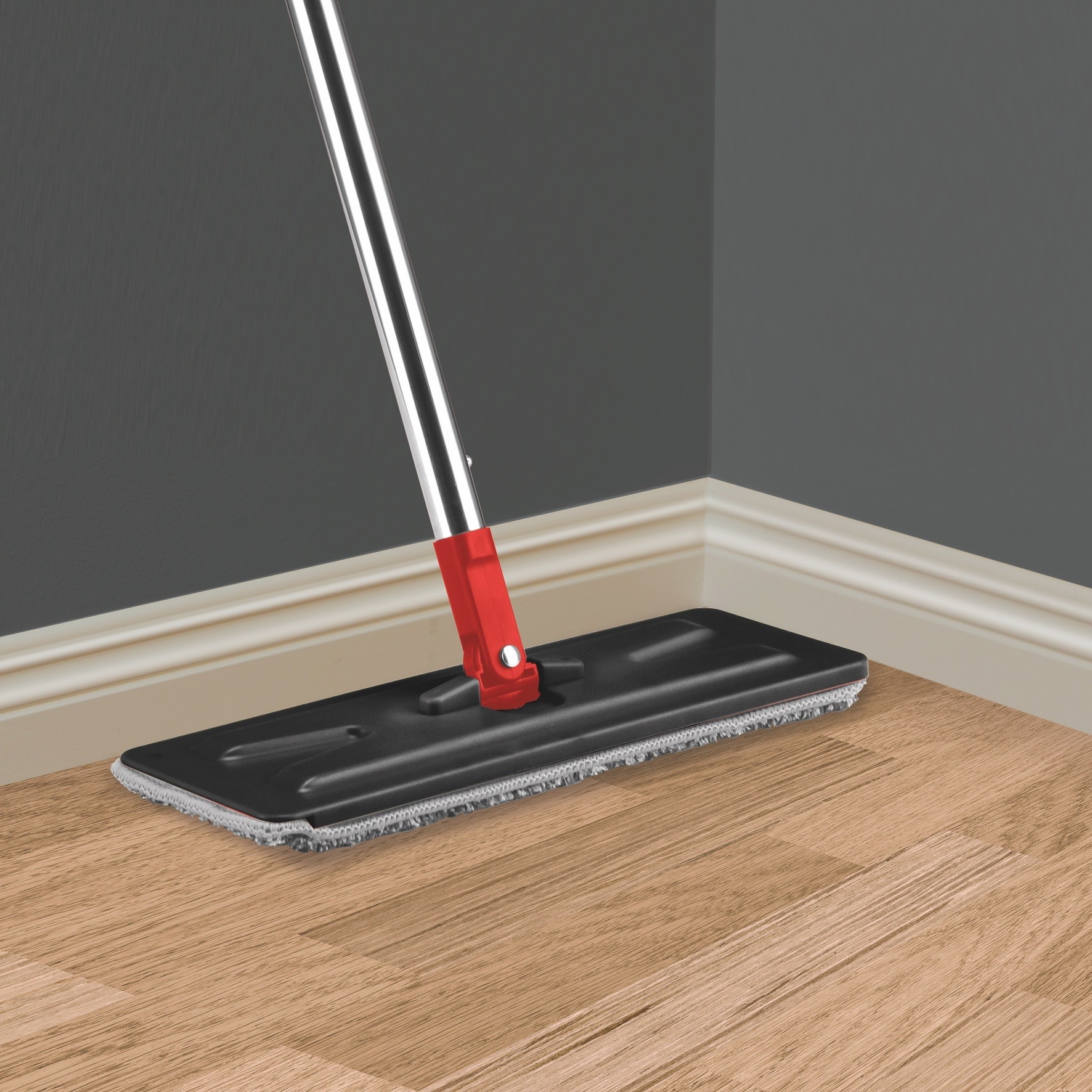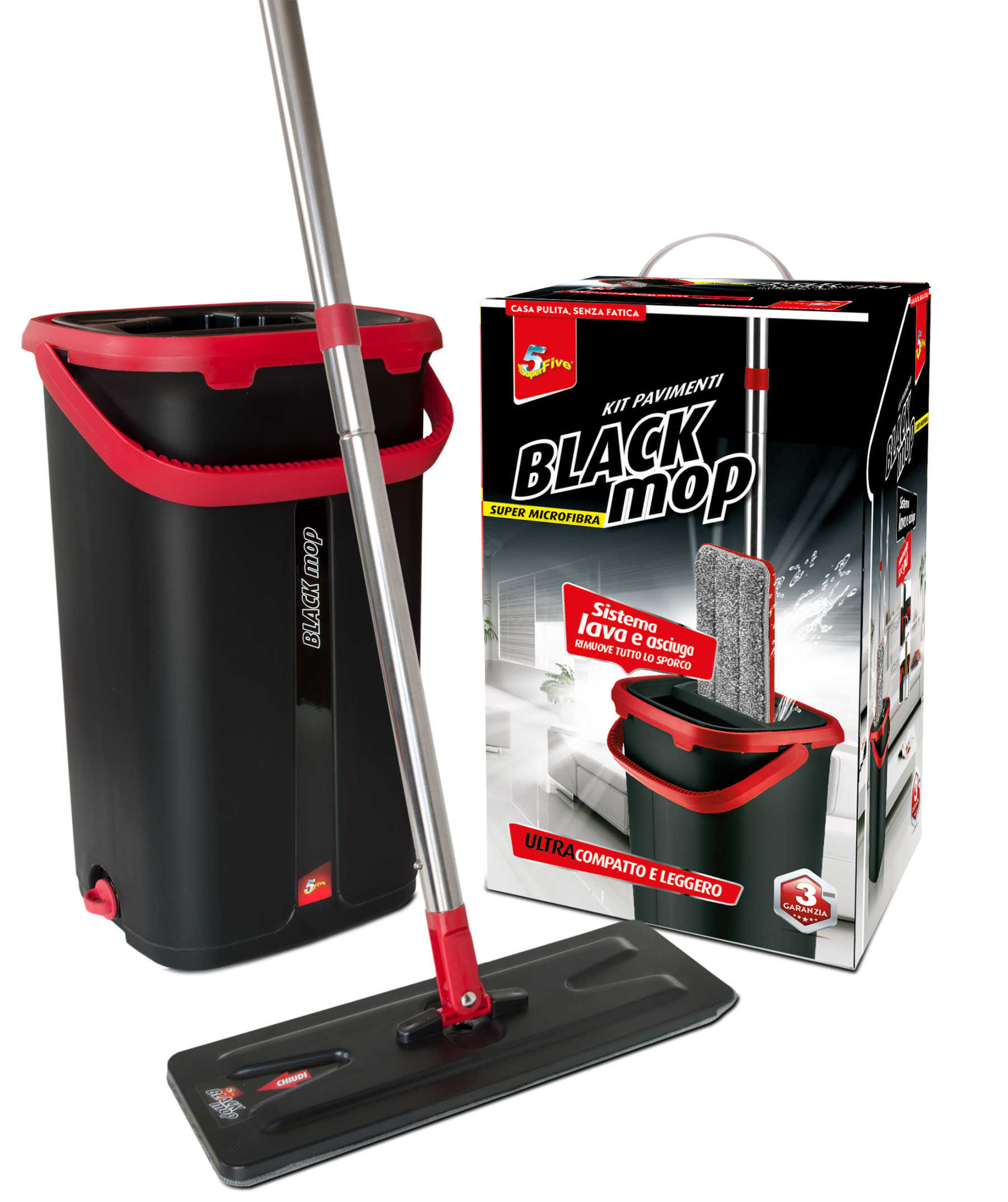 Kit per la pulizia dei pavimenti a frangia piatta. Piattina rettangolare in 100% microfibra che pulisce e deterge ogni tipo di pavimento e ti consente di arrivare facilmente negli angoli. Dotato di sistema lava e asciuga azionabile con un semplice e veloce movimento “su&giù”: lava, asciuga e rimuove tutto lo sporco accumulato.
